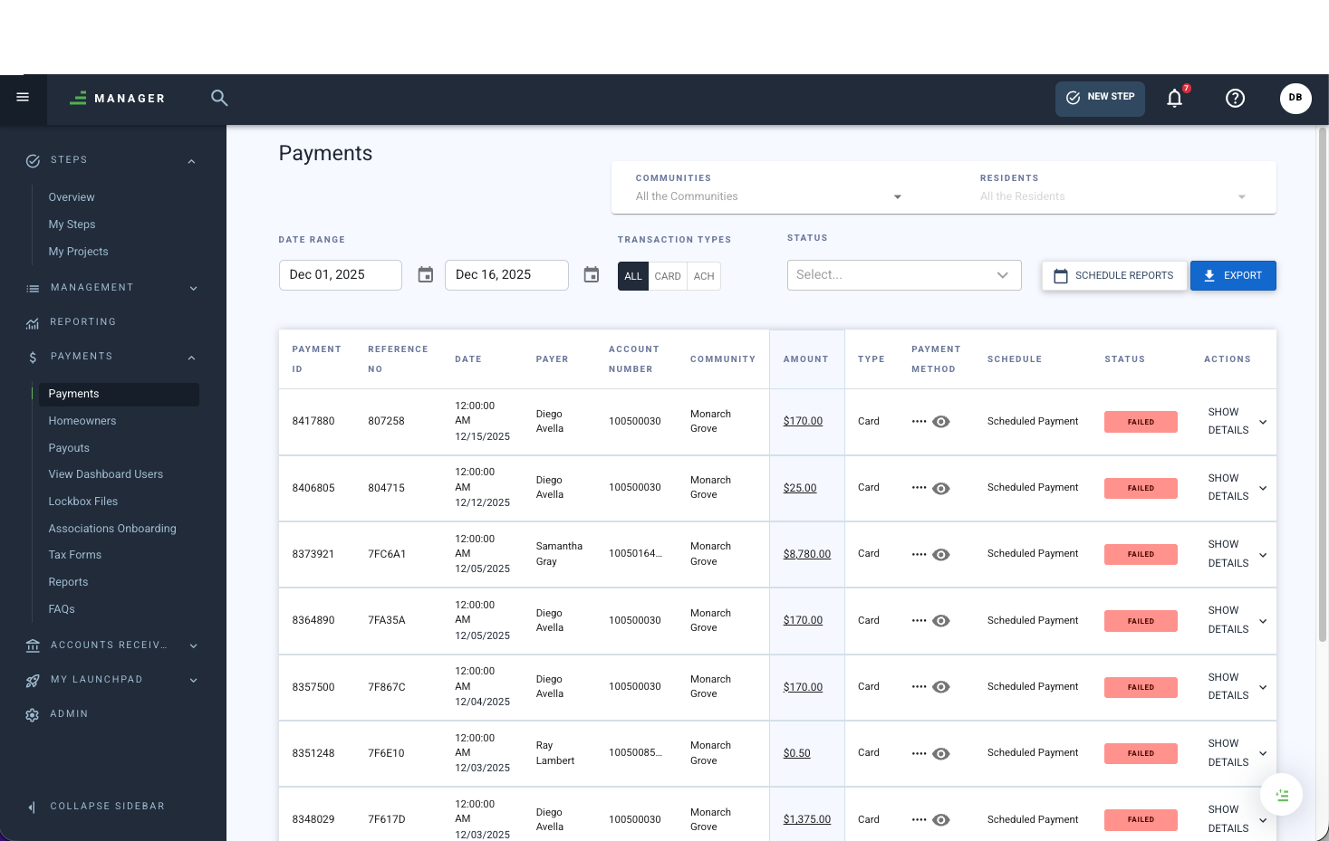 The FS Pay Dashboard is now integrated into Manager, giving CAMs and authorized teams direct access to homeowner payment and balance details. Answer payment questions in real time, reduce system switching, and support homeowners faster during peak payment season.